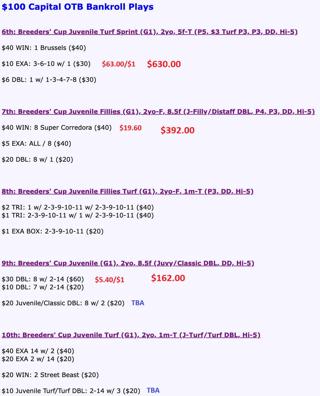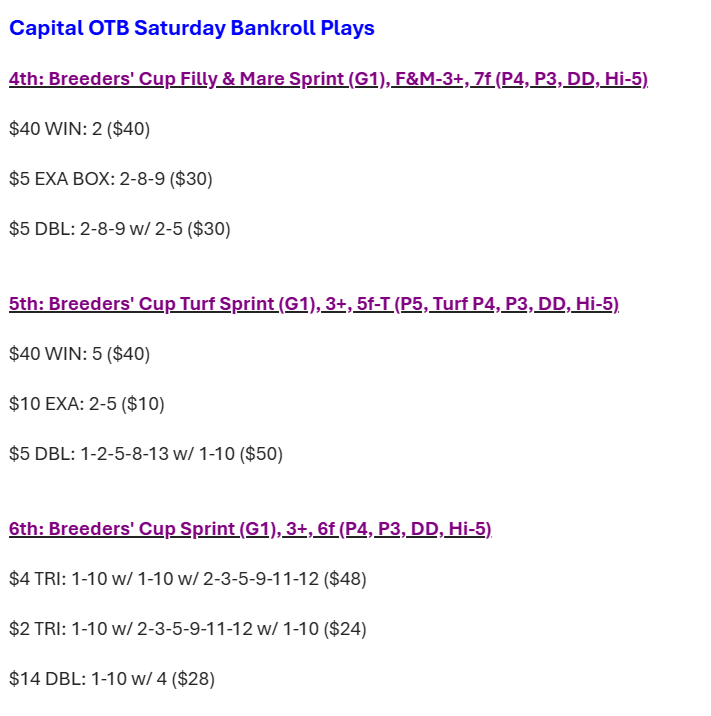 Team members: You must place a bet on Friday Oct 31 and Saturday Nov 1 with your Capital OTB account
