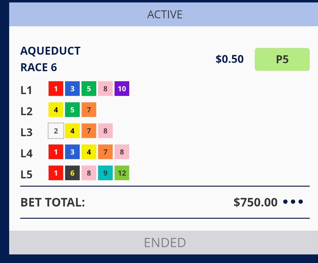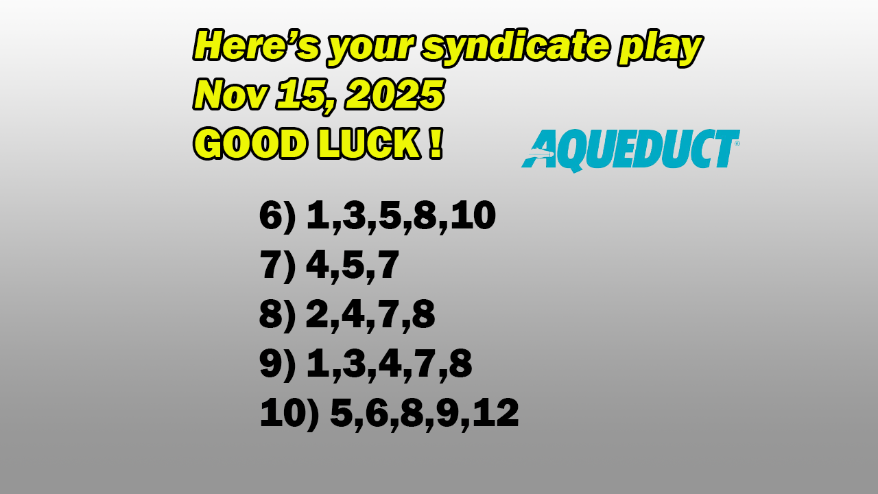 All the dollars will be wagered on Pick 5 at Aqueduct on Saturday 11.15.25.